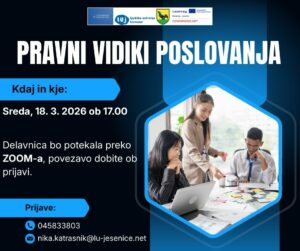 Vabimo vas na brezplačno praktično delavnico »Pravni vidiki poslovanja«, ki bo potekala v sredo, 18. marca, ob 17:00 preko Zoom-a.